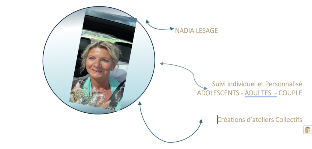 Nadia Lesage -Psychopraticienne. j’accompagne les personnes dans la relation d’aide, de soutien : Adolescent, adultes, couples.